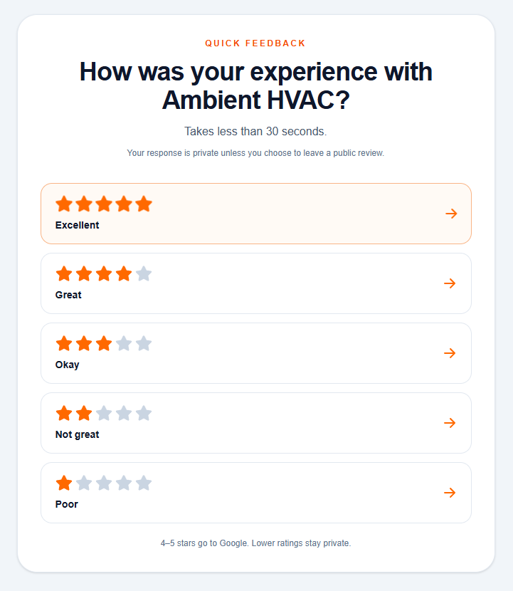 After a completed job, send customers to a simple review request page.